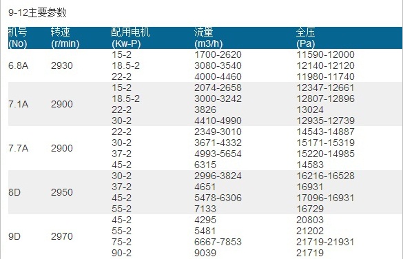 1、8-09/9-12高壓離心風機的圖片及(jí)參數(shù)表(biǎo):