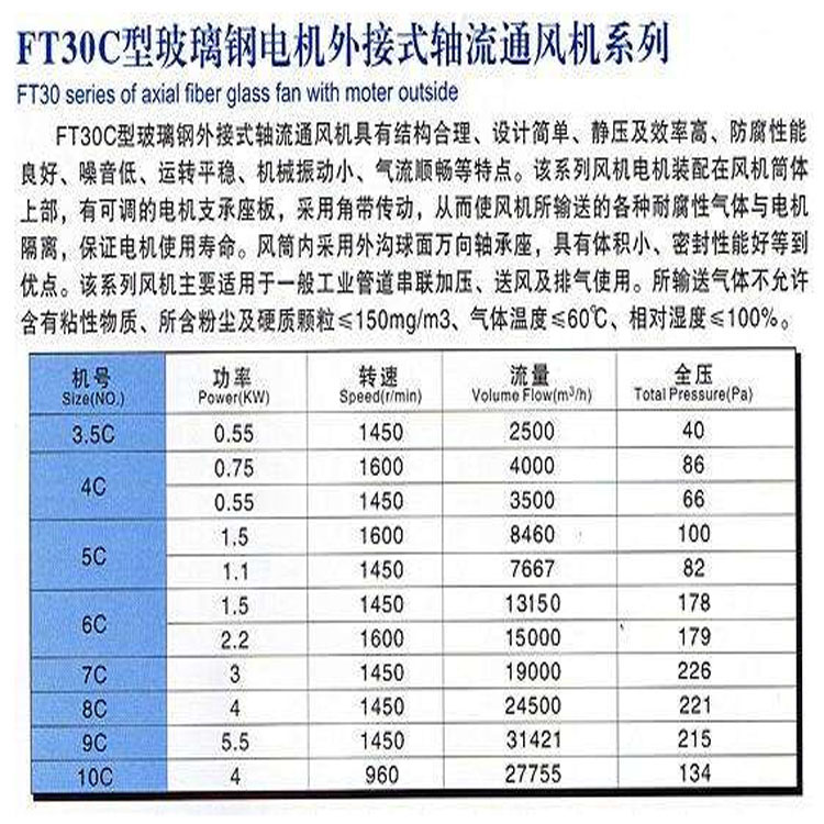 T30-C式電機外置軸流風機(皮帶式(shì)軸流風機,軸流防爆風機(jī)),材質可選鑄鐵,玻璃鋼或者PP塑料材質,電機可選防爆電機,可輸送(sòng)易燃(rán)易爆的氣體。輸送氣(qì)體溫度不超過60度(dù),輸(shū)送氣體中的顆粒或粉塵含量小於(yú)150mg/m3,相對濕度小於100%。